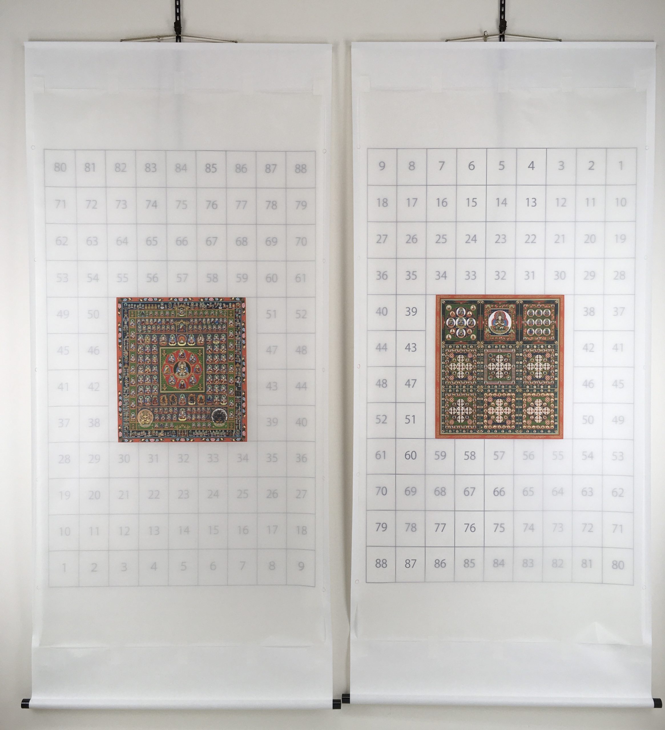 金剛界曼荼羅と台蔵界曼荼羅とを順打ちと逆打ちで一本づつ